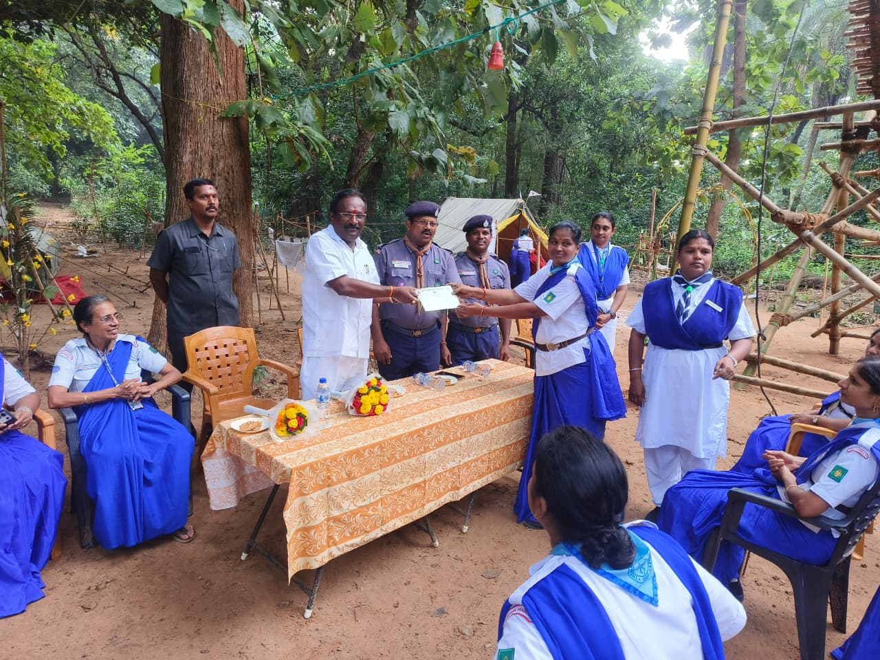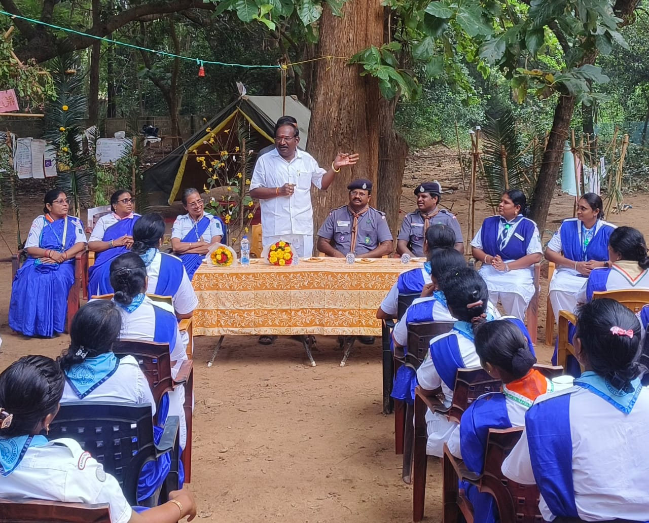 భారత్ స్కౌట్స్ అండ్ గైడ్స్ ప్రాంతీయ శిక్షణా కేంద్రం, పూల్ బాగ్, విజయనగరంలో జరుగుతున్న పీఎం శ్రీ పాఠశాలల మహిళా ఉపాధ్యాయుల అడ్వాన్స్డ్ గైడ్ కెప్టెన్ శిక్షణా శిబిరాన్ని 6వ రోజు ఉత్తరాంధ్ర ఉపాధ్యాయ ఎమ్మెల్సీ డాక్టర్ గాదె శ్రీనివాసులు నాయుడు సందర్శించారు. ముందుగా గైడ్ కెప్టెన్లు తయారు చేసిన క్యాంప్ క్రాఫ్ట్, గాడ్జెట్లు, పయనీరింగ్ ప్రాజెక్టులు పరిశీలించారు. ఆయన మాట్లాడుతూ మీ సేవాభావంతో పిల్లల్లో దేశభక్తి, క్రమశిక్షణ, నిజాయితీ, ధైర్యసాహసాలు, సమైక్యత భావన పెంపొందించే బాధ్యతను స్వచ్చందంగా తీసుకొని శిక్షణకు ముందుకు వచ్చినందుకు అభినందించారు. ప్రాంతీయ శిక్షణా కేంద్రం అభివృద్ధికి తన వంతు కృషి చేస్తానని, ఒకేసారి 200 మంది విద్యార్థులైనా శిక్షణ పొందుటకు అవసరమయ్యే డార్మిటరీ నిర్మాణానికి, ప్రాంగణంలోకి ప్రవేశించే రహదారి అభివృద్ధికి కృషి చేస్తానని తెలియజేశారు. ఈ సందర్భంగా జట్టు నాయకత్వ శిక్షణ పూర్తి చేసుకున్న గైడ్ విద్యార్థుల సర్టిఫికెట్లను సంబంధిత ఉపాధ్యాయినిలకు ప్రధానం చేశారు. Ch.L.N కామేశ్వరి ఈ కోర్సుకి లీడరుగా వ్యవహరిస్తున్నారు. జిల్లా కార్యదర్శి వాక చిన్నంనాయుడు మాట్లాడుతూ ఉమ్మడి జిల్లాల నుంచి 20 పాఠశాలల ఉపాధ్యాయినిలు ఇందులోని స్కిల్స్ ను అభివృద్ధి చేసుకొనుటకు పాల్గొన్నారన్నారు. కార్యక్రమంలో గైడ్స్ కమిషనర్ కె సౌభాగ్య లక్ష్మి, జాయింట్ సెక్రెటరీ S.కనకలక్ష్మి, DTC A.కనక లక్ష్మి, ట్రైనింగ్ కౌన్సిలర్ పీవీ శార్వాణి, ASOC దుర్గా నాగేశ్వరరావు తదితరులు పాల్గొన్నారు.