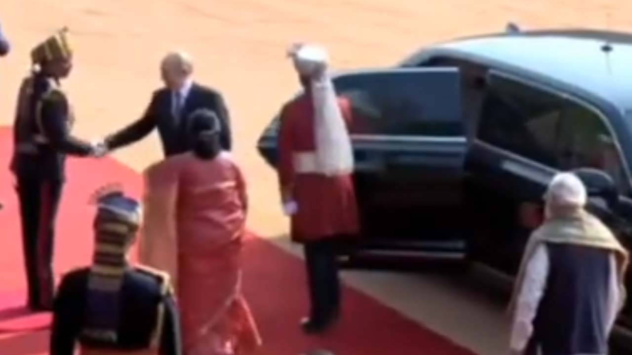 Putin India visit viral moment: రెండు రోజుల పర్యటనకు భారత్కు వచ్చిన రష్యా అధ్యక్షుడు వ్లాదిమిర్ పుతిన్.. ప్రధాని మోదీ, రాష్ట్రపతి ద్రౌపది ముర్ముతో భేటీ అయ్యారు. కట్టుదిట్టమైన భద్రత మధ్య పుతిన్ భారత్లో పర్యటించారు. చిరకాల బంధానికి గుర్తుగా మోదీ స్వయంగా ఎయిర్పోర్టుకు వెళ్లి స్వాగతం పలికారు. ఇక రాష్ట్రపతి భవన్కు వెళ్లిన పుతిన్ ఒక్క షేక్హ్యాండ్తో భారతీయుల హృదయాలను గెలుచుకున్నారు. దీనికి సంబంధించిన వీడియో సోషల్ మీడియాలో వైరల్ అవుతోంది. ప్రొటోకాల్ను దాటి, భారత సైనికుడికి పుతిన్ స్నేహపూర్వకంగా షేక్హ్యాండ్ ఇచ్చి ఆప్యాయత్వాన్ని చూపించారు.